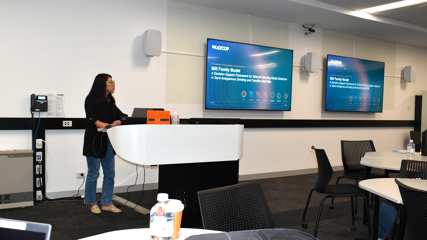 El Dr. Yufan Mu realiza una presentación sobre el Modelo Familiar Mill en la Masterclass de Molycop en Kalgoorlie.El equipo de expertos de Molycop —Danh Chung, Giehard Nebre, Pieter Strobos y el Dr. Yufan Mu— ofreció una serie de presentaciones interesantes y esclarecedoras que abarcaron: