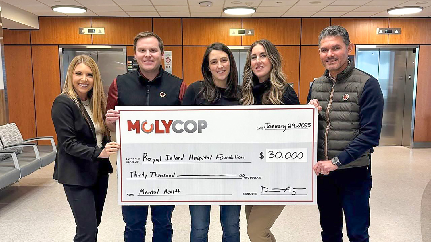 Témoignant de l’engagement de Molycop envers la santé et le bien-être des communautés où elle est implantée, son soutien contribue directement aux programmes et ressources en santé mentale du RIH, améliorant ainsi la prise en charge des patients aujourd’hui et assurant la pérennité des services. Dans le cadre de ce partenariat, le logo de Molycop sera affiché dans une salle de soins intensifs du service des urgences Teck, soulignant l’engagement commun à obtenir des résultats concrets pour Kamloops et les communautés environnantes. Heidi Coleman, directrice générale de la Fondation de l’Hôpital Royal Inland, a déclaré :Nous sommes profondément reconnaissants de la générosité de Molycop, qui contribue à renforcer les services de santé mentale, à investir dans des ressources essentielles et à créer un environnement plus favorable pour toutes les personnes qui dépendent de soins accessibles à l'hôpital Royal Inland et dans toute notre région. Nous nous réjouissons de poursuivre ce précieux partenariat et de travailler ensemble pour avoir un impact encore plus important dans les années à venir !